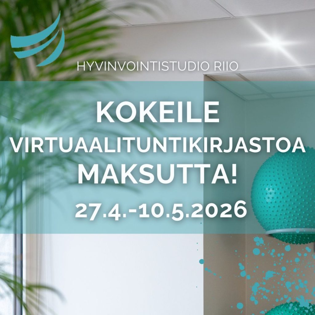 Maksuton Hyvinvointistudio RIIO:n virtuaalituntikirjaston kokeilujakso on avoinna 27.4.-10.5.2026!